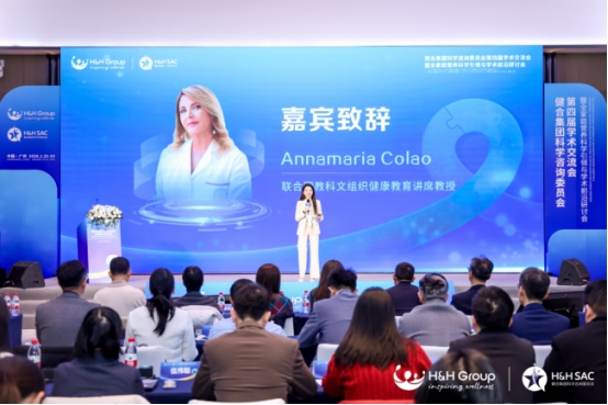 H&H SAC作为健合集团旗下科研学术创新平台,在本次大会中充分展现了强大的国内外高校、科研院所、协会及国际权威资源优势。联合国教科文组织健康教育讲席教授Annamaria Colao通过视频表达了对于与H&H SAC成功合作的喜悦。她表示,过去与H&H SAC共同推进了近十项深入的科学倡议,并将研究成果成功转化为实际应用,未来双方将继续合作,携手建立精准营养的代际标准,为全家庭健康注入科学动能。