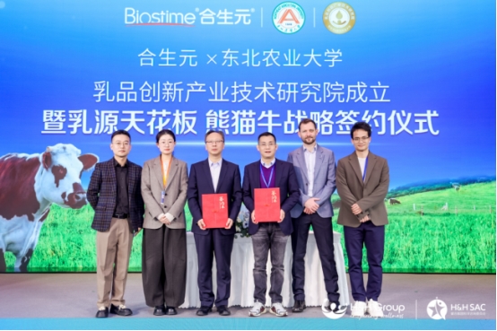 在品质深耕上,合生元携手东北农业大学开启“乳品创新产业技术研究院成立暨乳源天花板·熊猫牛战略签约仪式”。此前,双方依托“乳源创新研究中心”围绕诺曼底“熊猫牛”奶源展开系统研究,实证其乳源天花板品质。今年,双方深化与升级合作,成立“乳品创新产业技术研究院”,进一步深挖“熊猫牛”奶源价值,持续夯实高端婴配粉的营养科学根基,为中国宝宝提供更贴近母乳、更值得信赖的奶粉选择。